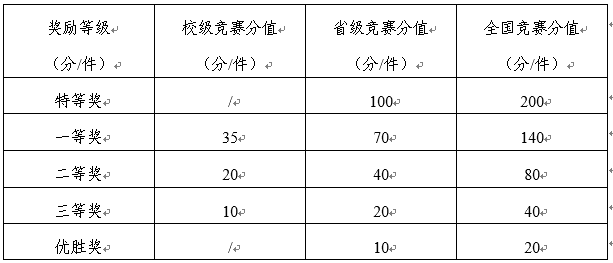 表1 各级竞赛名次和分值对应表