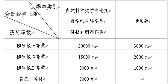 表2 不同类别、不同奖项的资助经费上限明细表
