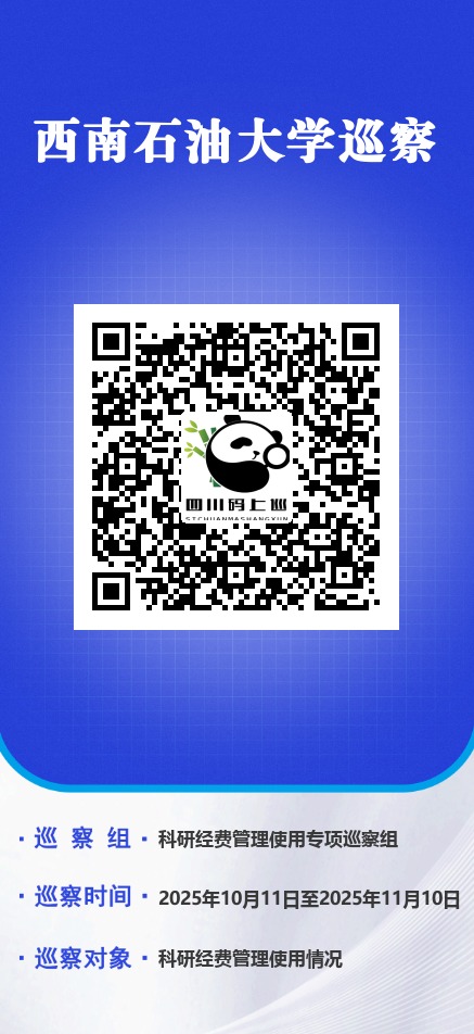 按照校党委要求和巡察工作领导小组安排,科研经费管理使用专项巡察组从2025年10月11日至11月10日对学校科研经费管理使用情况开展巡察。根据《中国共产党巡视工作条例》和《中共西南石油大学委员会巡察工作办法》规定,巡察组在巡察期间受理反映学校科研经费管理使用问题的来信来访,重点是关于违反党的纪律以及违反科研经费管理使用方面政策法规的举报和反映。师生员工如有举报和反映问题的,可以通过电话、电子邮箱、扫描“四川码上巡”二维码等渠道与巡察组联系。