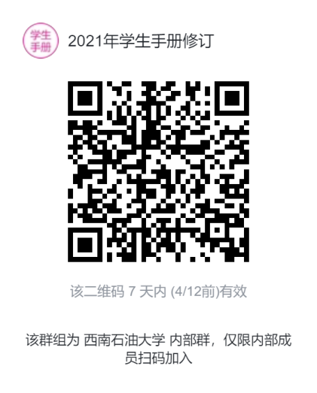 2.为便于工作联系,请各单位指定1名修订工作具体经办人作为联络员,于4月12日前及时扫码加入学生手册修订工作专用飞书群。