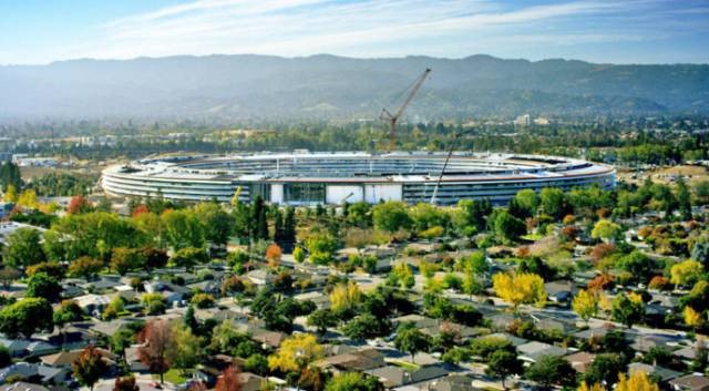 今年4月开始投入使用,年底完工的苹果总部办公大楼"Apple Park",其圆环的顶部全部铺设太阳能电池板,装机容量为17MW。当加州的阳光透过360度通透环形体,射入大楼内部,被滤去大部分紫外线和热量后的阳光,再也没有刺眼和暴晒。
