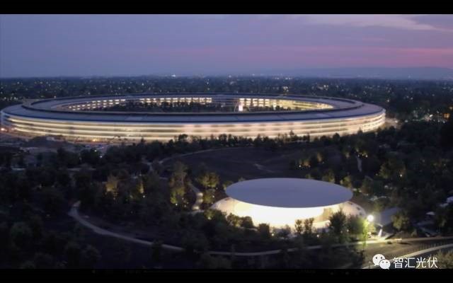而"Apple Park"通过屋顶分布式光伏系统,实现自己给自己发电,100%的可持续能源。