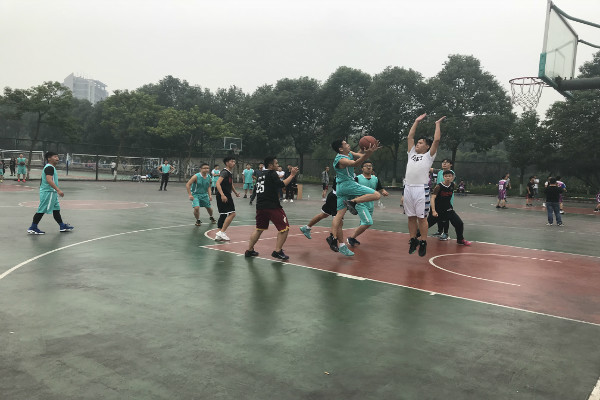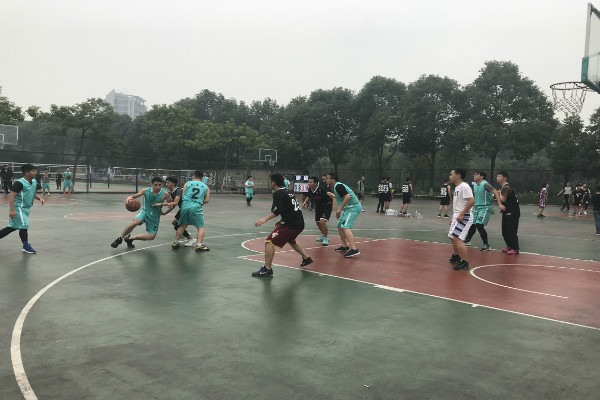10月12日中午12:30,机电院篮球小组赛研一队和17级机设队的比赛在一期篮球场正式开赛。