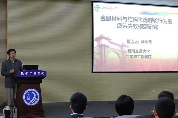 10月16日上午,为提高研究生的科研意识、增添学院的学术氛围,机电工程学院在明志楼B105举办“品百家之言,迎甲子华诞”校庆系列讲座——金属材料与结构考虑棘轮行为的疲劳失效模型研究。本次讲座的主讲人为西南交通大学力学与工程学院院长康国政教授。