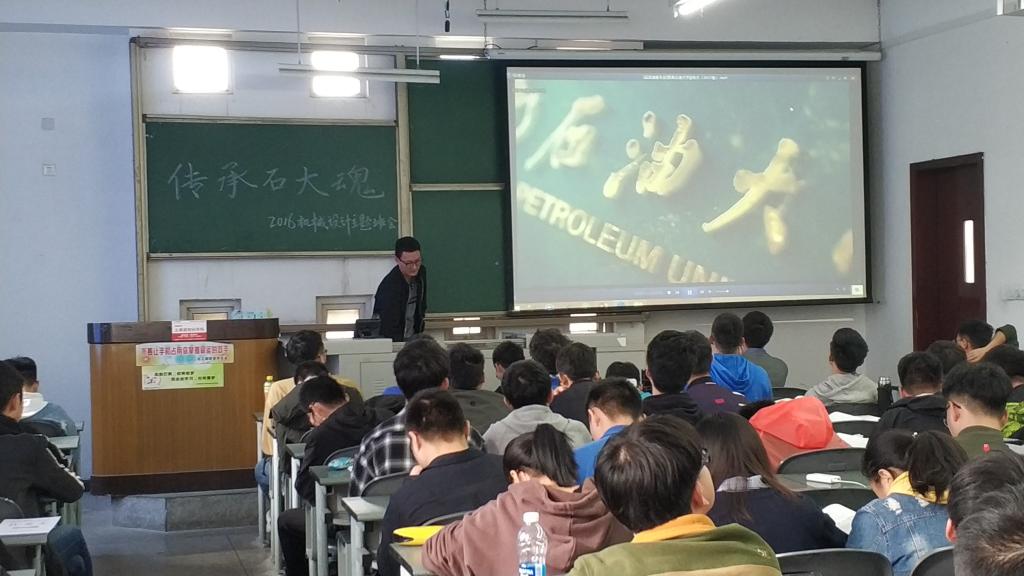 在介绍完西南石油大学精神发展史后,主持人带领大一班成员观看了西南石油大学60周年校庆宣传视频,从全面深化改革开放开始到现在,学校的发展状况,取得的各项成绩令同学们赞叹不已。