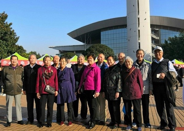 当老校友们渐渐来齐时,场面也变得越来越热闹,他们纷纷在体育馆前进行合影留念,特别是他们看到自己的老朋友时,就开始一起聊天,一起欢笑,一起回忆在母校的青春岁月。