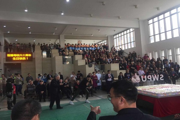 下午5点30,机电院老师们和校友们举行了欢迎仪式,共同祝福母校60周年诞辰,品尝母校的美味佳肴,并在之后由志愿者带领校友们前往学校一期田径场,欣赏学校举办的文艺晚会,领略母校献上的辉煌风采。