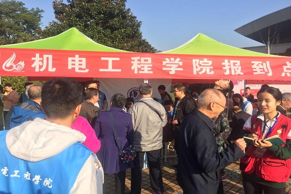 本次校庆活动自31日早上8点有序开展,在机电院的老师和学生志愿者的共同努力下,校友们由专车接送到校园,并在博学广场得到热烈的接待问候,在电子墙上留下他们可爱的脸庞和对学校的寄语。
