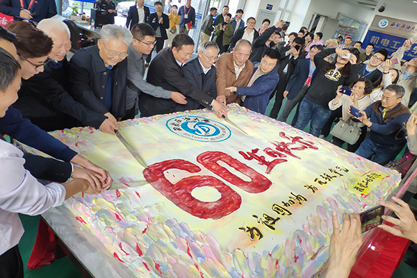 庆祝会最后,是大家期待已久的切蛋糕环节,校友代表与我院领导共同将60周年纪念蛋糕切开,在场的所有人分享了蛋糕、共享了母校的恩泽。大家纷纷以自己的方式向母校表达了感恩之情,并衷心祝贺母校60华诞生日快乐,希望母校能更加辉煌,为国家、社会培育更多有用之才、恩泽中华。(文/吴成怀 图/李嘉禾)