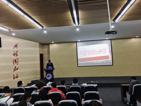 为了响应西南石油大学“60周年校庆”发扬西南石油大学精神,2017级测控技术与仪器全体学生于2018年11月12日16:30在明志楼B105教室组织召开了关于“学习双一流推进大会中省委彭清华书记贺信、尹力省长致辞、赵校长报告以及学习和感悟建校60周年艰苦创业接力拼搏的西南石大精神”为主题的专业会议。