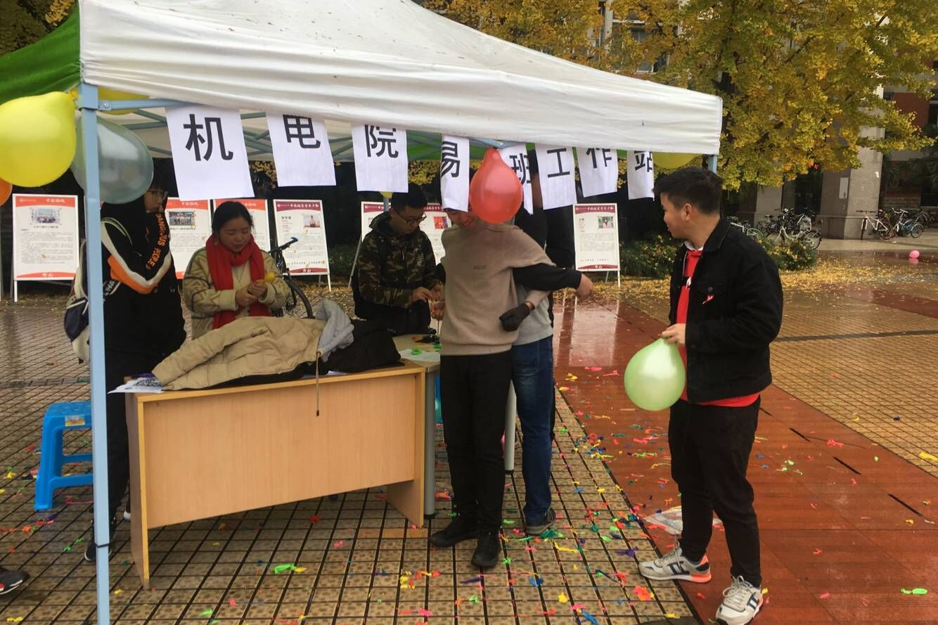 活动由全校易班部门共同举办,主要活动内容为游戏闯关,各院易班设计创想游戏,并负责组织实行,以供同学们参与其中,释放压力,享受愉悦的时光。另外还设有奖励机制,当累计完成六项闯关后即可参与抽奖,奖品丰厚。(机电院易班人员为气球闯关游戏准备的气球)