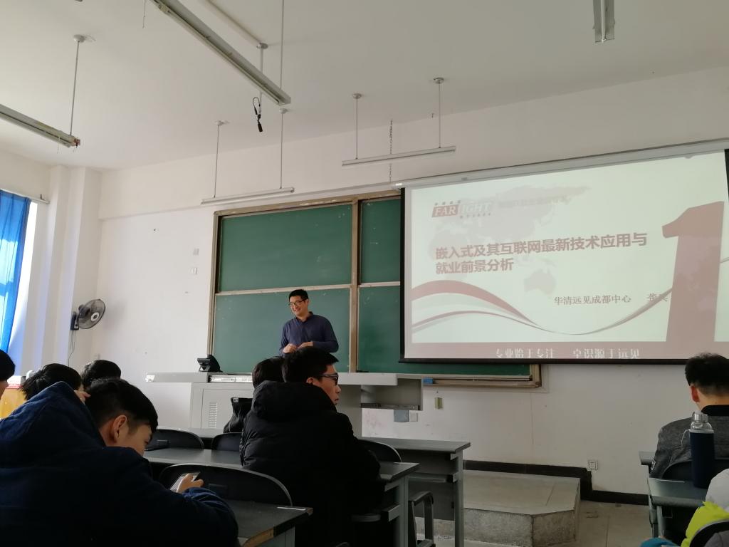 会上,张老师首先请出了华清远见公司的一位指导老师——龚老师,详细的为同学们介绍了测控技术与仪器专业学生以后的重要发展方向之一——嵌入式开发。龚老师强调,嵌入式开发是目前较为火热,同时也是性价比较高的行业之一,从事嵌入式开发工作对于测控专业的同学来说,门槛较低,专业知识利用率较高,薪资水平也较高,相对来说是比较适合的工作,希望同学们感兴趣可以多多接触并学习嵌入式。