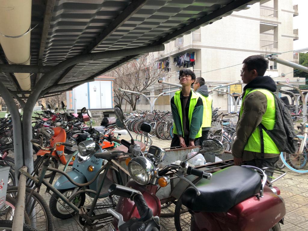 尽管冬天的下午让人想宅在室内,但是这些外界因素丝毫不减大家的热情,志愿者们准时到达了约定地点,分为了两组分别在二期食堂附近和一期食堂及宿舍附近进行。一组组员负责二期食堂、二期操场、二期寝室附近的自行车,二组队员负责一期食堂、体育馆周围的自行车。慢慢的,我们把原来不规范的自行车都摆放的整齐有序。冬日的寒风无疑增加了本次活动的难度,但是丝毫不减志愿者们的热情,反而撸起袖子加油干!很快,石大的道路的两旁变得干净整洁,自行车的摆放也变得整齐有序,让这一片成为了一道风景线。