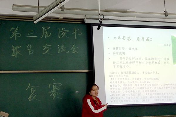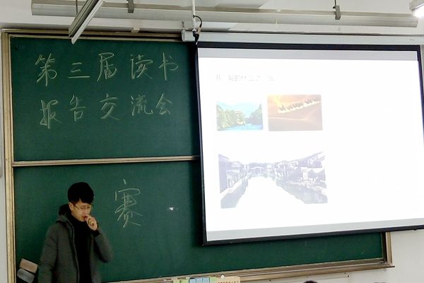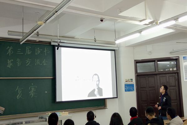 本次复赛所采取的形式为选手根据自己所讲内容主题制作 PPT进行演讲,演讲时间为8—10分钟。我院选手代继樑同学分享的书籍为《文化苦旅》,在他的分享中,评委和同学们感受到了余秋雨先生笔下的这本书并不是在欣赏山水风景,而是在对历史的沧桑的一种回顾,叹息和哀伤,也是对人生的一种激励。一次次的漂泊旅程,都是在增长我们的智慧,洗涤着我们的心灵;蒲凯伦同学分享的《平常茶,非常道》让听众们感受到了林清玄所描绘的“茶能生善,茶可洗心。”的精神境界;徐建同学分享了我校学生借阅率最高的书——《平凡的世界》,在他口中为大家展现了那个年代的劳动与爱情,挫折与追求,痛苦与欢乐,让同学们懂得平凡才是伟大的真理;王昆鹏同学为大家带来了《乔布斯传》,为同学们展示了乔布斯生前坚定的信仰和非凡的“苹果”。