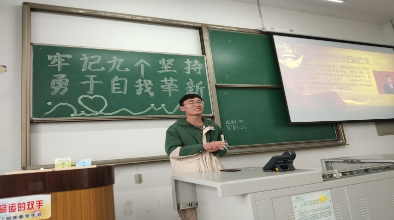12月20日星期四下午,测控大二班团支部在明理楼B204开展了本学期最后一次团组织生活。本次团组织生活以“牢记九个坚持,勇于自我革新”为主题。