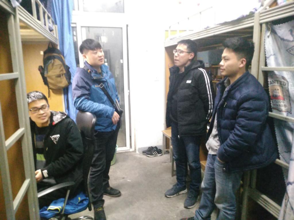3月3日晚,机电院辅导员伍建川老师分别进入16级机械工程于与16级测控技术与仪器两个专业的男生寝室查访和慰问。