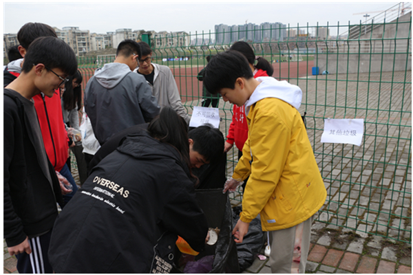 活动过程中,各位志愿者认真,仔细地搜寻并拾起地上的垃圾;其中最让人头疼的就是地上的烟头,体积小数量多,给志愿者的工作增加了很大负担。一个多小时过后,所有的小组集合到二期操场,开始筹划开展垃圾分类的工作;尽管任务巨大而且繁琐,但热心的志愿者没有丝毫抱怨,而是以热情积极的态度完成了所有的垃圾分类任务。最后在分类完毕之后,由青志协的志愿者们将分好类的垃圾送往东侧的垃圾回收站;学校的清净整洁再次向前迈出了崭新的一步。