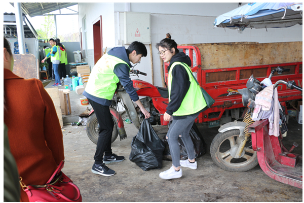 图 4 青志协志愿者将分类后的垃圾带到垃圾回收站