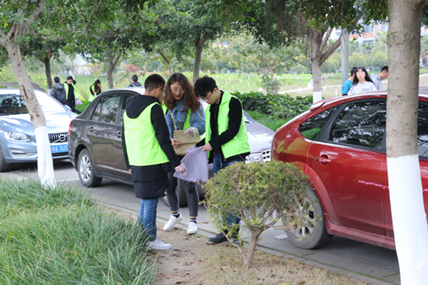 即使清晨天气寒凉,也抵挡不住志愿者似火的热情。首先,70多位志愿者集合于明志楼,由本次活动的负责人交代各组的任务以及负责区域,参与活动的志愿者分为三个小组,分别负责一期操场,梦溪湖畔的小花园以及二期操场。分工完成后,志愿者们换上相应的工作服,接受了垃圾分类管理人员的相关培训;最后在分配好手套垃圾袋之后,志愿者们便从明志楼朝着工作区域出发了。