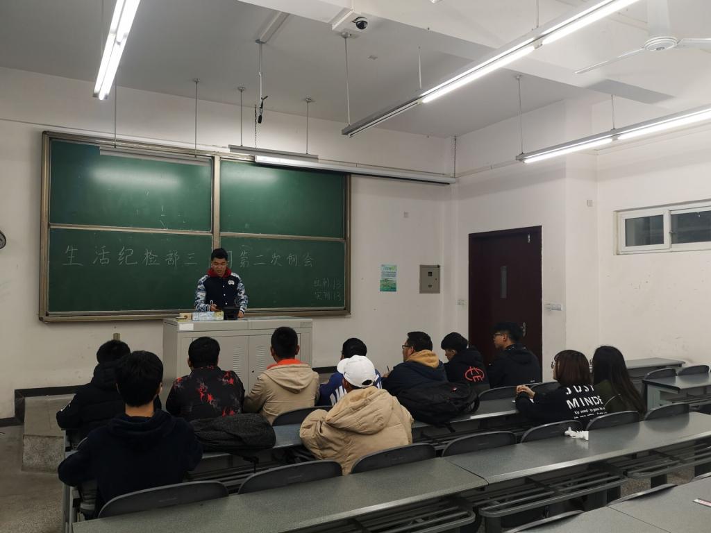 机电工程学院生活纪检部全体成员于3月24日晚上9点45按时到达明志楼a301参加纪检部三月的第二次例会。