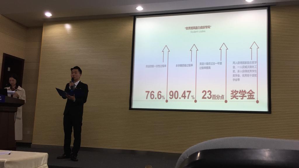 除了视频之外,同学们还准备了一个非常详尽的PPT,向评委老师展示了工设一班的同学们在以往的学习生活中取得的优秀成就,如遥遥领先的过级率、奖学金获得与优秀干部奖等等。一班同学们在风采展中也给评委老师们留下了很好的印象,负责答辩的同学甚至为此置购了一套西装,大家对此次团支部风采展的重视程度可见一斑。在风采展的答辩环节中,负责答辩的同学吐词清晰、言语流利,向在场的评委与观众展现了一班同学的翩翩风采。