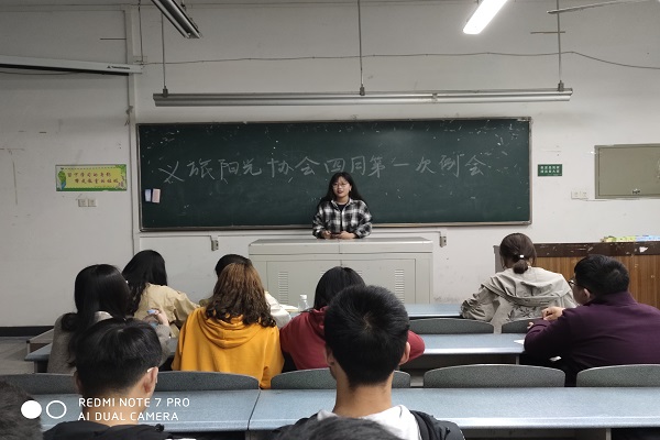 为了更好的开展接下来的活动,对暑期实践队伍进行准备工作,义旅阳光协会于2019年4月2日星期二晚,在博学楼b308举行了四月第一次例会。