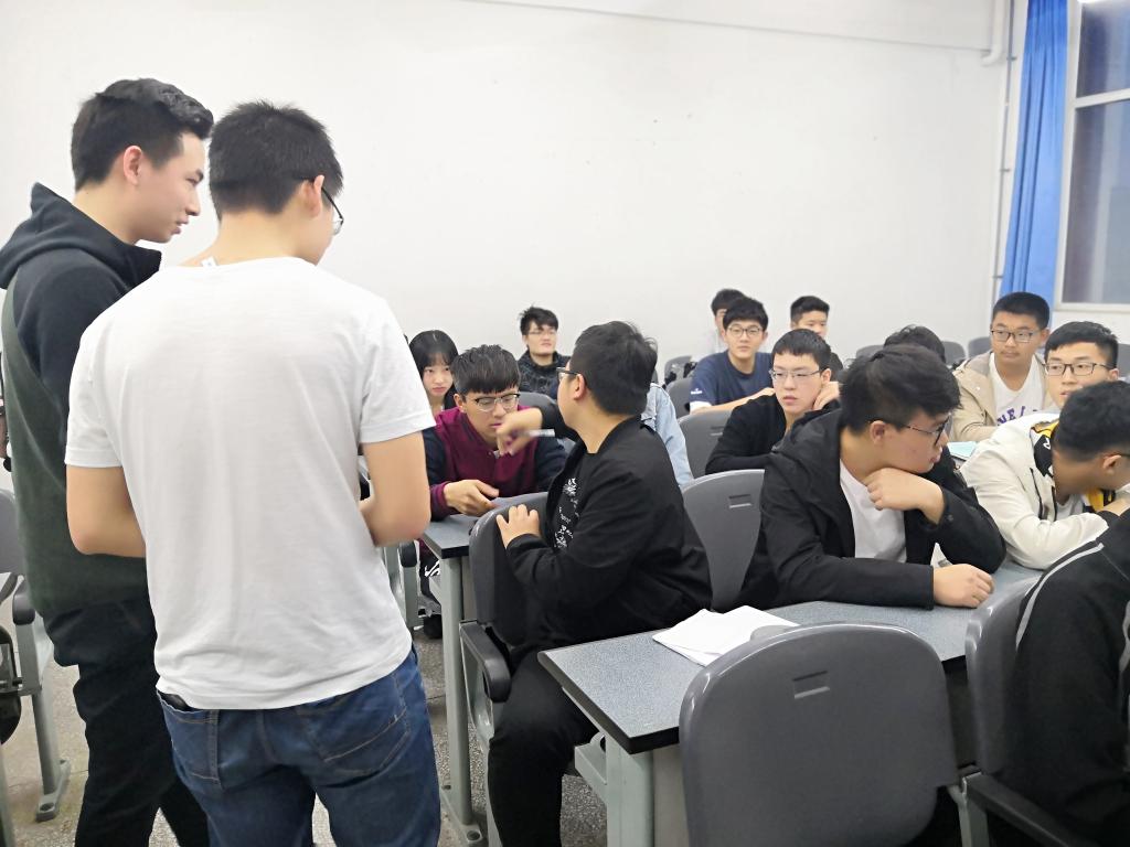 活动开始前,过控大二班学习委员杨松首先照常进行考勤。然后组织班级学生按照机电院团委学习部本次活动相关要求落座,并且详细解释了竞赛组成为单词接龙和句子传递,使班级学生提前调动起了自己的英语单词储备。
