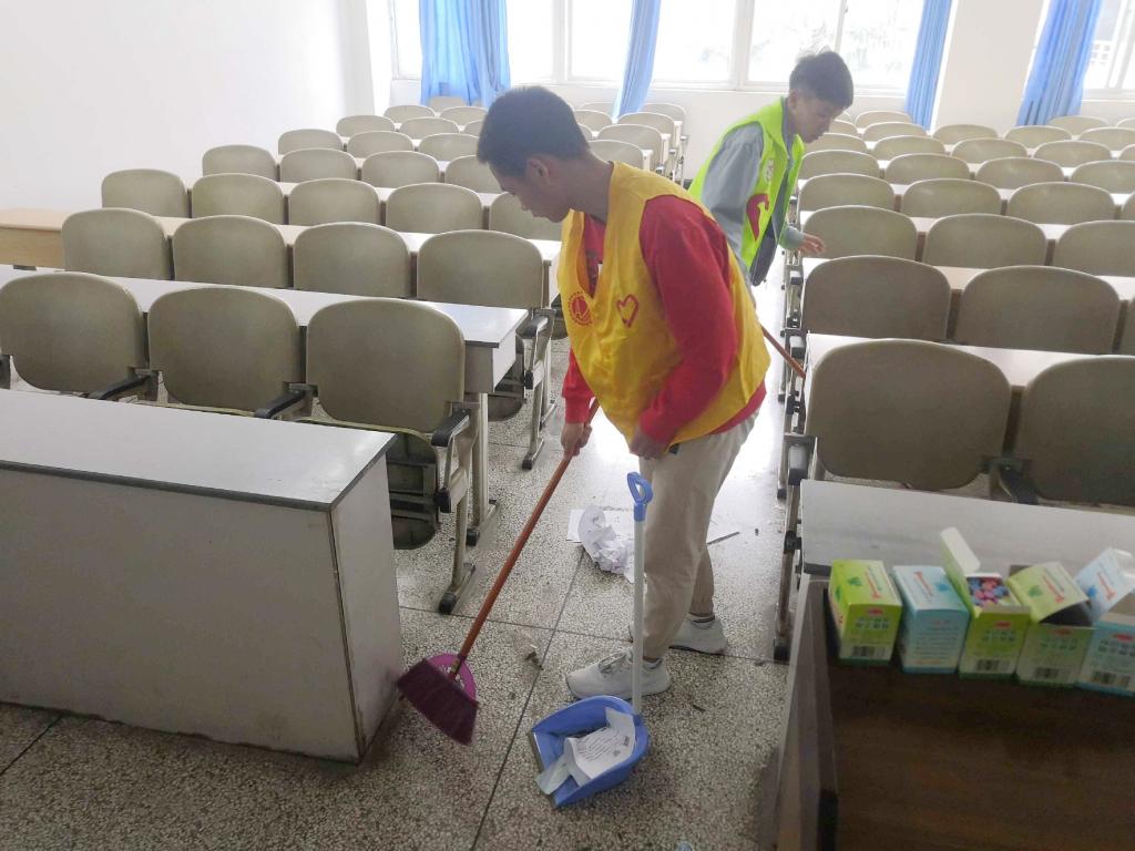 谷雨时节,雷阵雨来袭,凉风习习,却并没有冷却志愿者们火热的心。下午,志愿者们踏着小雨准时来到了思学楼,并且带来了扫把、簸箕、抹布等工具。活动前十分钟,组织者付颖给每一位志愿者分配了任务,并让志愿者们进行签到。活动一开始,志愿者们就拿着自己的工具,到指定的位置开始工作。大家工作十分认真,每一个角落都不会放过。随着时间的流逝,本次活动也接近尾声,而在志愿者们的辛勤劳动下,教室逐渐变得整洁干净。