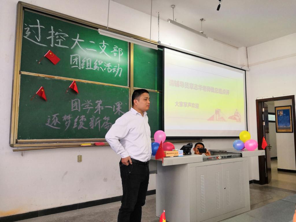 之后,章志华老师发表讲话,嘱咐大二班团员们“新学期要有目标、有规划,要自律。什么是自律?你心里想逃课,但仍然每天坚持上课,这就是自律。”