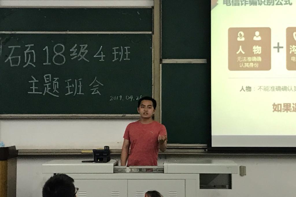 4月26日下午七点,机电工程学院硕2018级4班于明志楼A302举行了“百年五四青年精神暨防电信诈骗宣传”主题班会,硕2018级4班全体同学参与了本次主题班会。