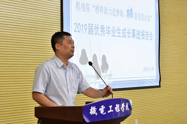 2019年4月29日下午7点,机电工程学院团委学生会在明志楼b105举行“优秀毕业生成长事迹报告会”。机电院党委副书记姚伟宁老师,辅导员张亦驰、徐博、陈月、袁月、冯诚沉、夏天鸿老师等出席了本次活动。