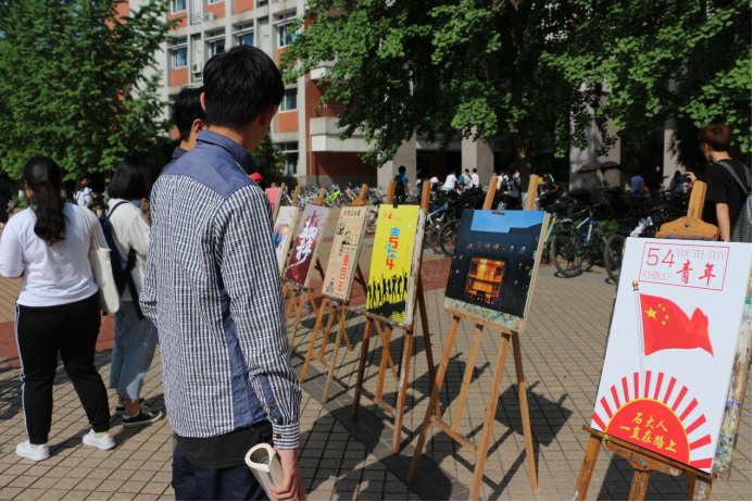 4月29日,为纪念五四运动100周年,弘扬“爱国、进步、民主、科学”的五四精神,由机电工程学院主办,工业设计本科党支部、机电院学生会全媒体中心、机电院社团联宣传部承办的“书写青春,奋发图强,放飞梦想”原创作品展在石泉广场举行。据悉通过前期宣传、班会动员,本次作品展收到海报、书法、摄影类作品合计200余项,最终筛选出40项作品进行展出。