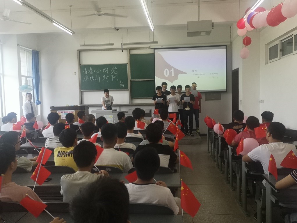 2019年5月16日下午两点半,在学校明理楼B204,由2018级机械设计制造及其自动化第一、二团支部共同召开了团组织生活。本次团组织生活的主题为“青春心向党,建功新时代”,意在纪念五四运动一百周年,号召同学们继承五四精神。