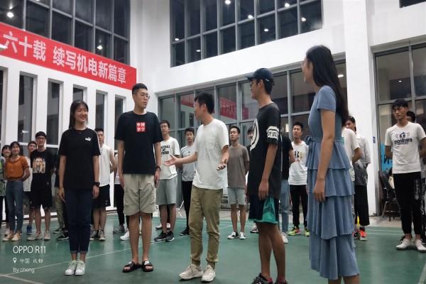 我们的节目由基层组,三支一扶,退伍军人,研究生组四个部分构成。经过了之前一个月的排练,节目已大致成型。然而在一些动作的细节处理上,仍有不足。因此,今晚的排练主要是细扣动作和主讲人的朗诵。首先我们开展了几次整体排练,之后我们对每一组的部分进行详细排练。在排练过程中,四川音乐学院的指导老师们认真负责,耐心指导,带领大家将动作分解,纠正每个演员的舞姿,并总结指出了个别动作存在的不足,主要包括整体不一,脱离节奏,面部表情不自然。在川音老师的指导下,演员们积极地改进动作,克服不足,努力做到连贯整齐,韵律一致。