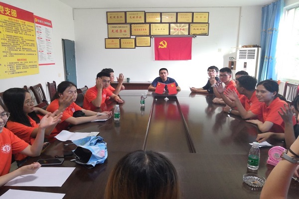 下午禄加镇的领导组织队员们开了一个短会。首先对支教队的带来表示热烈的欢迎,着重提醒支教队注意安全问题,其次,陈书记让支教队熟悉农村,熟悉孩子们学习情况,了解农村青少年教育教学的现状。面对突发情况要采取相应的应急措施。最后,陈书记也祝愿支教队能够顺利完成这个有意义、充实快乐的暑期实践活动。