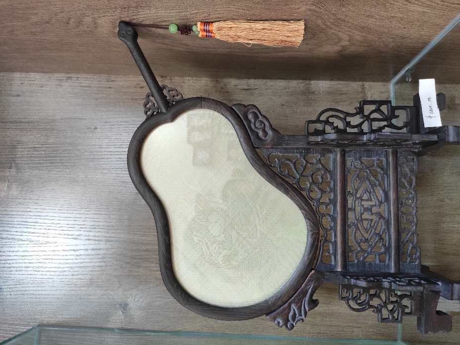 自贡市的天色蒙蒙亮时,寻寻扇柚实践队已经出发前往目的地了。龚扇展销门店设在自贡市图书馆一层,可见龚扇已是当地非物质文化遗产中不可或缺的部分。初见龚扇,实践队员们便被这出神入化的手工技艺折服。若不是实践队在出发前对龚扇制作运用的竹编技艺做了些了解,恐怕会误以为这是丝绸制成的扇子。编好的龚扇精美绝伦,在薄如蝉翼的桃形扇面上,一个个仕女图案栩栩如生。据店里的手工艺人介绍,龚扇的制作讲究经纬交错、明暗相生,每根竹丝的编制都要一丝不苟,才能在扇面上形成精美的图案。