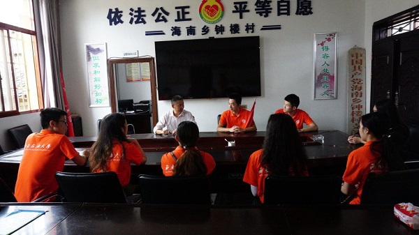 清晨,细雨没有浇灭队员的热情,怀着激动的心情,队员们来到了海南乡钟楼村。尹书记热情的接待了队员们,书记首先为队员们介绍了村落的历史与发展。曾经,这里是一个经济繁荣,商路繁华之地,丝绸之路与红军长征的途径之地,文化与经济在这里繁荣,发展。美丽总是带着遗憾,历史曾给这份美丽给予了沉重的打击,多少美丽在当时陨落,现在已经鲜有遗迹,让人不免遗憾。书记带领青年梦之队的队员们,参观钟楼村的村庄的建设,崭新精致的房屋建筑,完善的娱乐设施。现在的钟楼村,建立起了新的产业模式,曾经落后的村落,在国家精准扶贫的政策下,国家和党的帮扶下,建立起了民俗旅游业,依山傍水的钟楼村,发展起了自己的致富之路。