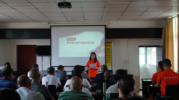 在青年梦之队的主持下,宣讲会开始了。此次宣讲会弘扬五四精神为主题,宣讲会分为五个部分,在青年梦之队的队长的主持下顺利开展,钟楼村的尹书记首先为此次宣讲会致辞,向到会的的党员们讲解五四精神,队员们也为到场的党员与干部带来了以歌声颂扬石油精神,朗诵赞美伟大祖国的节目。为了让参会人员更好的了解五四精神,五四精神是以“忧国忧民,热爱祖国,积极创新,积极科学”,青年梦之队的队员带来了以当代青年践行五四精神为主题的演讲给观众精神的震撼,最后,为了更好地学习五四精神,与会人员共同观摩学习习近平总书记关于五四的发言,深刻学习五四精神,给此次宣讲会带来了完美的收官。
