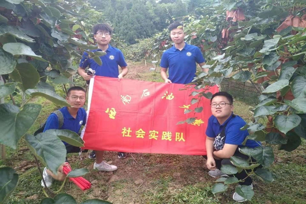 接下来实践队来到了四川紫杉农业科技有限公司,通过与该公司员工的交流,队员们对有关红心猕猴桃以及公司对其的生产加工过程有了初步的了解。苍溪红心猕猴桃口感天然、香甜爽口、果心小可食用、维C和糖度高,营养价值丰富。为了防止运输途中果实挤压损坏,也有特殊的包装来保护猕猴桃免受挤压。
