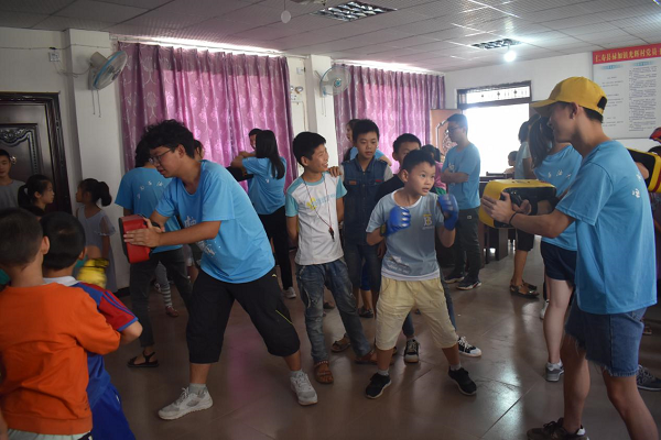 为大力弘扬爱国主义精神,传承中华民族传统美德。上午第一节课,杨明悦以生动朴实的语言,回顾了建国和改革开放以来发生的翻天覆地变化和取得的伟大成就,展望美好前景。教育孩子们要珍惜来之不易的幸福生活,提高民族自尊心和自豪感。其中一位孩子说道:我一定会克服困难,勤奋读书,将来成为具有高尚思想道德修养,做一个合格的社会主义事业建设者和接班人。严肃认真的爱国教育课程过后,王雨航给同学们带来了科学大百科,孩子们对这个课程表现得异常兴奋,为什么在雷雨天是先看到闪电再听到雷声的问题引发孩子们热烈的讨论,课堂气氛十分活跃。接下来进行的是散打课,孩子们认真地练习每一个动作,展现出满满的活力与朝气。
