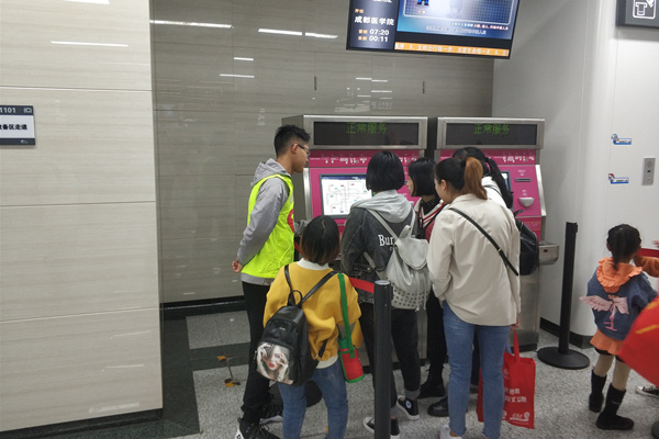 图 1 志愿者在帮助乘客购买车票