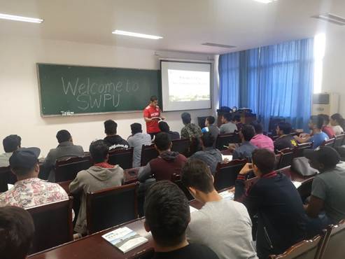 学长公开课环节,来自巴基斯坦的2016级优秀学生代表Affan代表所有国际学生老生欢迎新生的到来,他为同学们分发《国际学生手册》并讲解了重点内容,强调了规则意识的重要性,希望学弟学妹们能够勤奋自律。来自孟加拉国的2017级优秀学生代表成都市“一带一路”留学生奖学金获得者Efrat和四川省政府留学生奖学金获得者Emtiaz分别与同学们分享了他们在课堂学习和课外实践中的经验与收获,鼓励同学们能够努力学习,不断实践,积极学习中国传统文化与知识,充实大学生活。