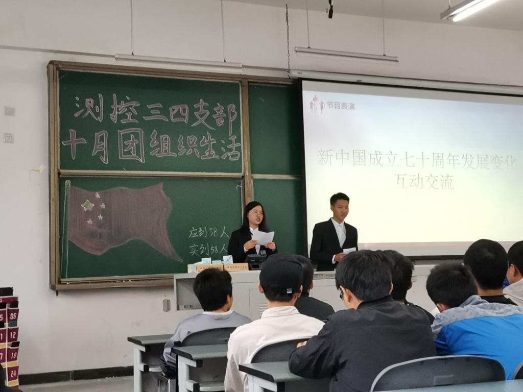 2019年10月24日星期四,19级测控专业的3、4班开展了本学期第一次团组织生活,主题为风雨兼程强国路,永葆初心续征程。