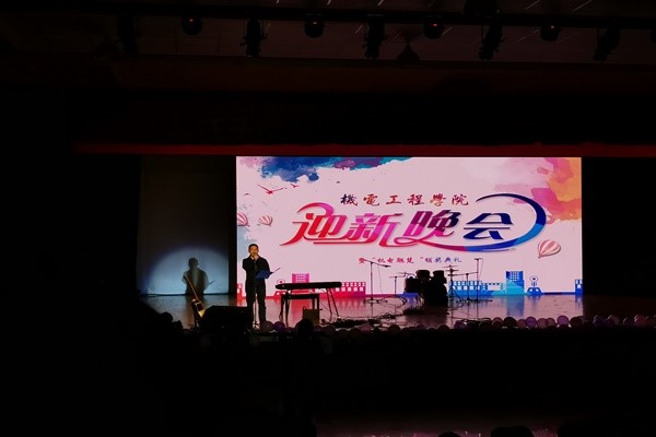 7点整晚会准时开始,主持人们身着庄重的礼服登台致开场白。随后,祝效华院长致辞,表示出对新生未来可期的美好愿望。机电院的同学和老师先后表演了多种类型的节目,包括幽默风趣的相声,妙不可言的魔术等。其中,机电院教职工代表的舞蹈《爱》展示出了机电院老师的风采。值得一提的是机电院研究生代表的节目《机电相遇的日子》,节目的背景视频讲述了几位主人公为何考研和怎样备研,最后在西柚机电院相遇的故事,演唱的是加有机电元素的改编歌曲,节目具有深刻的意义,受到观众一致好评。随即,对机电院表现突出的同学进行了“机电翘楚”的颁奖仪式,这些优秀的同学应成为我们学习的榜样。