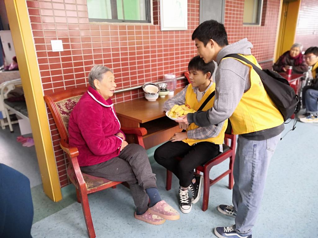 志愿者们把带来的水果切成小块分给老人们,和老人们慢慢交谈。志愿者们听公公、婆婆们讲述改革开放前后的个人经历,同学们感受到幸福的来之不易,同时也将自己在外面读书的情况以及家乡的建设和老人们进行了分享,原本沉寂的房间气氛马上活跃了起来,整个养老院萦绕着爱的暖流。随后,青志协志愿者们组织了一场小型联欢会,与老人们做起了“击鼓传花”的游戏,老人们兴致很高,欢声笑语充满了整个敬老院。最后,活动在全体志愿者们与老人合唱“我和我的祖国”中活动接近了尾声,老人们的脸上洋溢着幸福的微笑。一小时半的志愿服务时间很快过去,大家来到了大门合影留念,老人们和同学们恋恋不舍地一一告别,对同学们的志愿服务给予了很高的评价,随时欢迎同学们的再次到来。