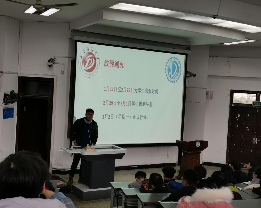 2020年1月10号,在思学楼C210,龚清能辅导员就寒假安排给2019级测控和工设的全体同学召开了期末总结班会。