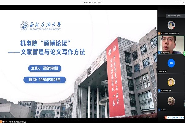讲座正式开始之前,冯诚沉辅导员简要说明了本次讲座的目的并介绍了分享嘉宾。分享嘉宾谭晓华副教授于2015年12月获西南石油大学油气田开发工程博士学位并留校任教,以第一作者或通讯作者身份发表文章近30篇,其中SCI收录17篇,总影响因子21,他引182,现为多家国际SCI期刊审稿人,主持了多项国家级和省部级重点项目。讲座伊始,谭晓华副教授首先从文献的排序和分类两方面讲解了文献管理的技巧,同时,在文献的排序上,谭教授介绍了时间排序和逻辑排序两种方式,并以自己的研究课题为例生动具体的分享了管理文献的经验心得。接下来谭教授从三个方面讲解了论文的写作技巧。首先是论文的构架套定式,根据理论推到类和实验方法类两种论文的成熟构架来安排自己论文的架构;然后是摘要套公式,完整的论文摘要包括背景、理论/方法、结果、结论几部分;最后是引文套格式,论文引文的格式一定要符合投递杂志的要求。讲座最后,同学们积极踊跃的提出了自己在科研和论文写作投递中遇到的问题,谭晓华副教授均结合自身的经历给出了细致的解答。至此,本次硕博论坛线上讲座圆满结束。