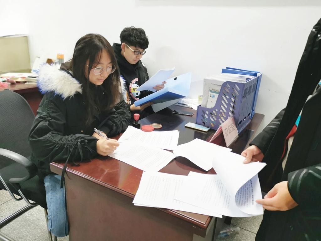 图为实践队在发送调查问卷。中国青年网通讯员 崔美玉 摄图。