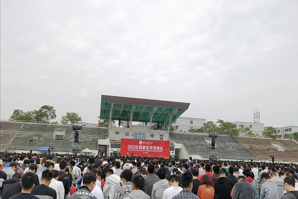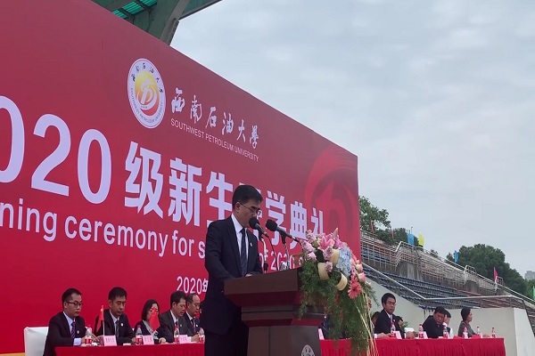 2020年9月30日上午9:00,西南石油大学2020级新生开学典礼在学校一期足球场隆重举行。全体校领导、学校相关职能部门负责人、各学院院长、分管学生工作负责人、新生辅导员以及机电院2020级研究生全体新生和其他学院新生出席了开学典礼,校党委副书记衡彤主持典礼。