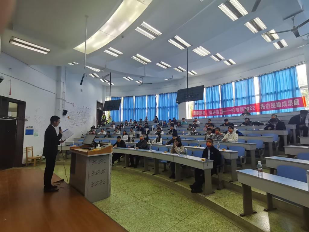 风采展结束后,章志华老师对本次活动进行了点评。他指出,班级作为大学人才培养最基础的组织形式,是开展大学生思想政治工作的主阵地和重要载体,希望通过“先进班级展示和学业先进集体表彰”这项学生活动把机电的班级建设成学术天地、生活家园、心灵港湾。